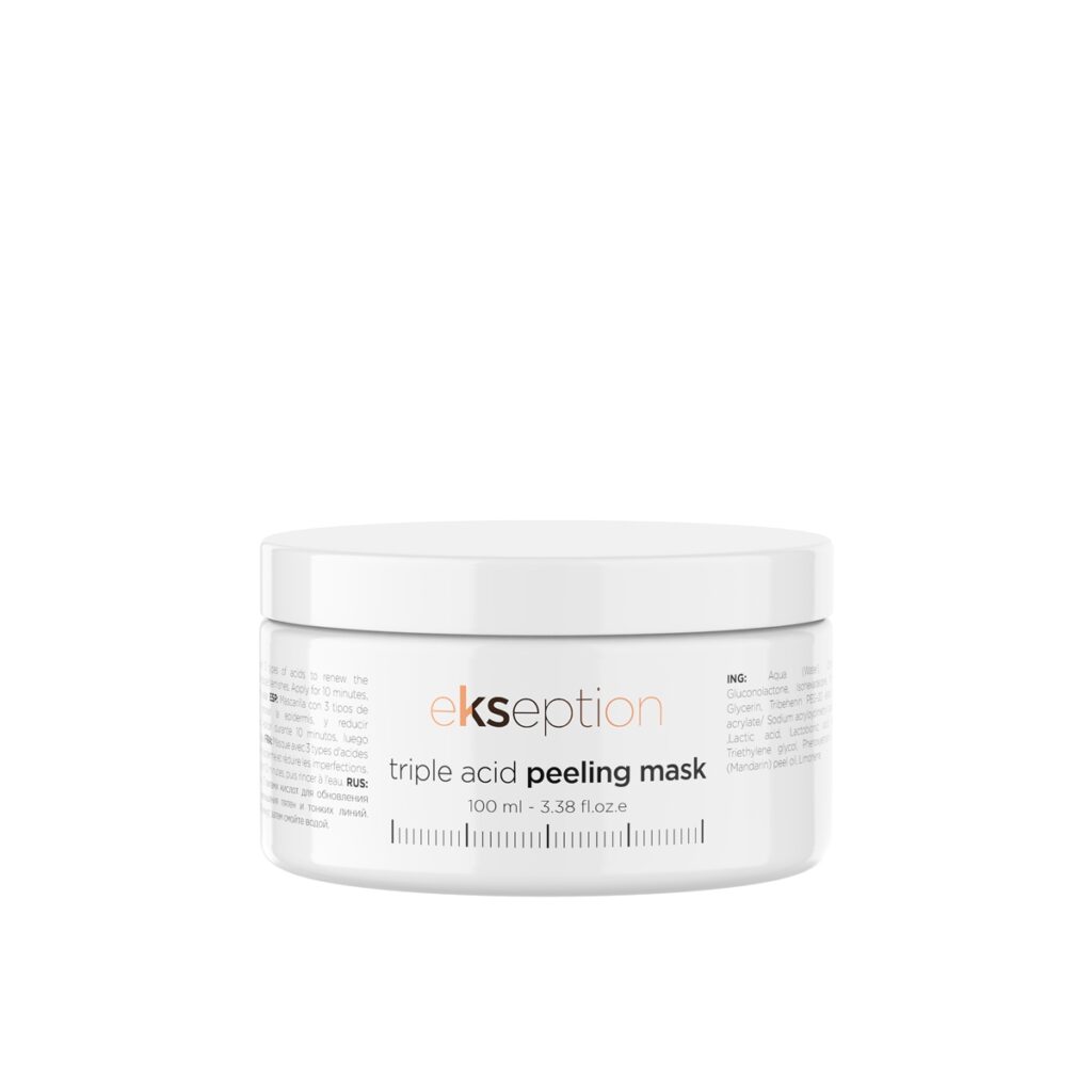 Професійна пілінг-маска збагачена потрійним комплексом органічних кислот. Засіб забезпечує сильне відлущування, попри обмежену концентрацію кислот, яке може зберегтися протягом 7 днів. Продукт допомагає зменшити шорсткість шкіри, зморшки та пігментні плями. Для посилення ефекту та досягнення видимого результату, рекомендується використовувати у поєднанні з відновлювальним кремом. Маска призначена для застосування раз на 15 днів. Маска-пілінг на кремовій основі з дуже низьким pH максимально комфортна у використанні завдяки над м’яким дотиком, легкістю нанесення та поступовим висиханням. Щоб досягти такого ефекту, використовується особлива технологія, яка забезпечує тонкий і рівномірний розподіл масляних крапель. Гомогенна емульсія з краплями середнього розміру близько одного мікрона забезпечує відчуття прохолоди та легкості, створюючи ефект танення при нанесенні на шкіру. Маска лягає тонкою, але помітною плівкою без відчуття жирності чи липкості.